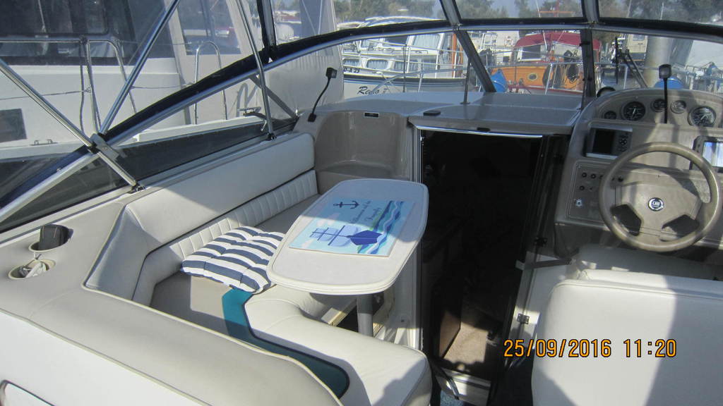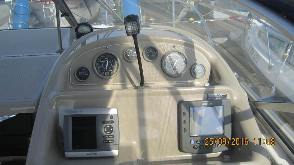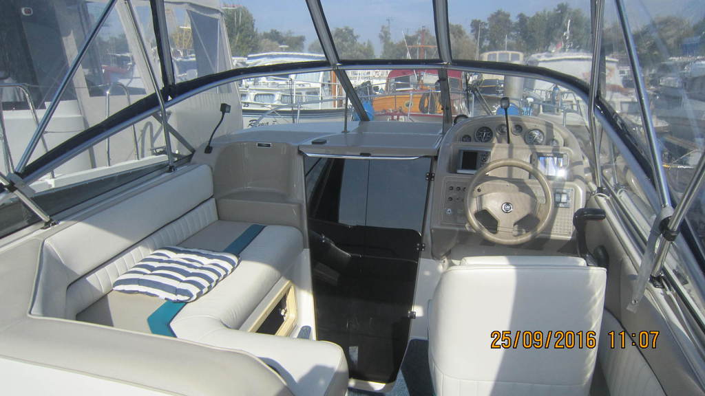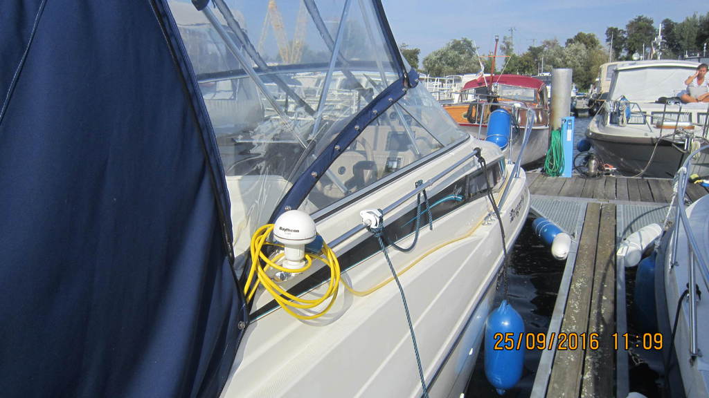 gepflegtes Kajütboot/Bayliner mit 4 Schlafplätzen/Unterflurkabine, Pantry Kühlschrank, Waschbecken, Kocher, WC, Heizgerät, CD Radio Blaupunkt, Navi, Echolot mit GPS, GPS Antenne Raystar108,
