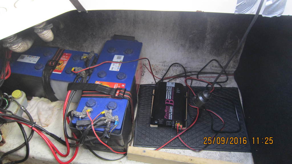 Batterieladegerät, zusätzlicher Tisch für hintere Sitzbank, Fenderkörbe, Fahrpersenning, Hafen/Transportplane, Anker, Fender, Bootshaken, Leinen usw.